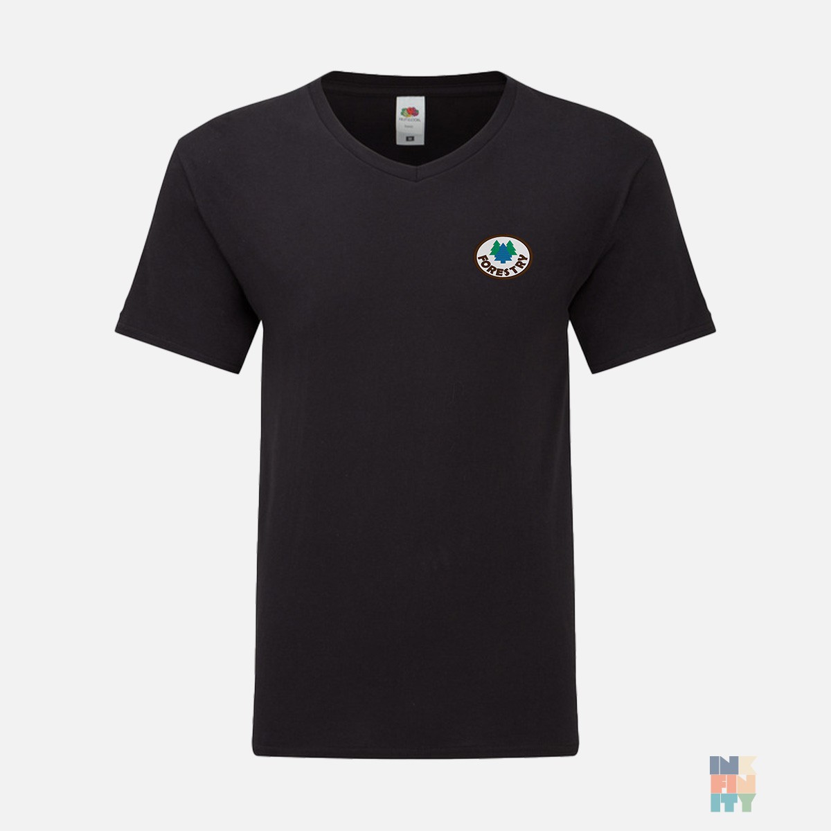 V-Neck T-Shirt Forest Camping Patch Embroidery Fruit of the Loom