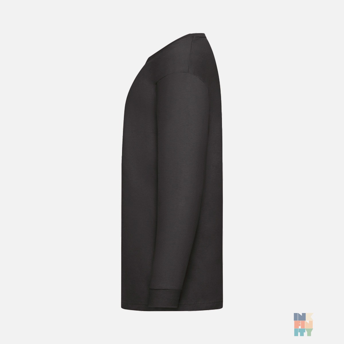 Kids Long Sleeve Fruit of the Loom: This long sleeve T-shirt offers a soft and breathable experience. The Heather Grey variant boasts 97% cotton and 3% polyester, while the Dark Heather Grey features a 50-50 cotton-polyester blend. With...