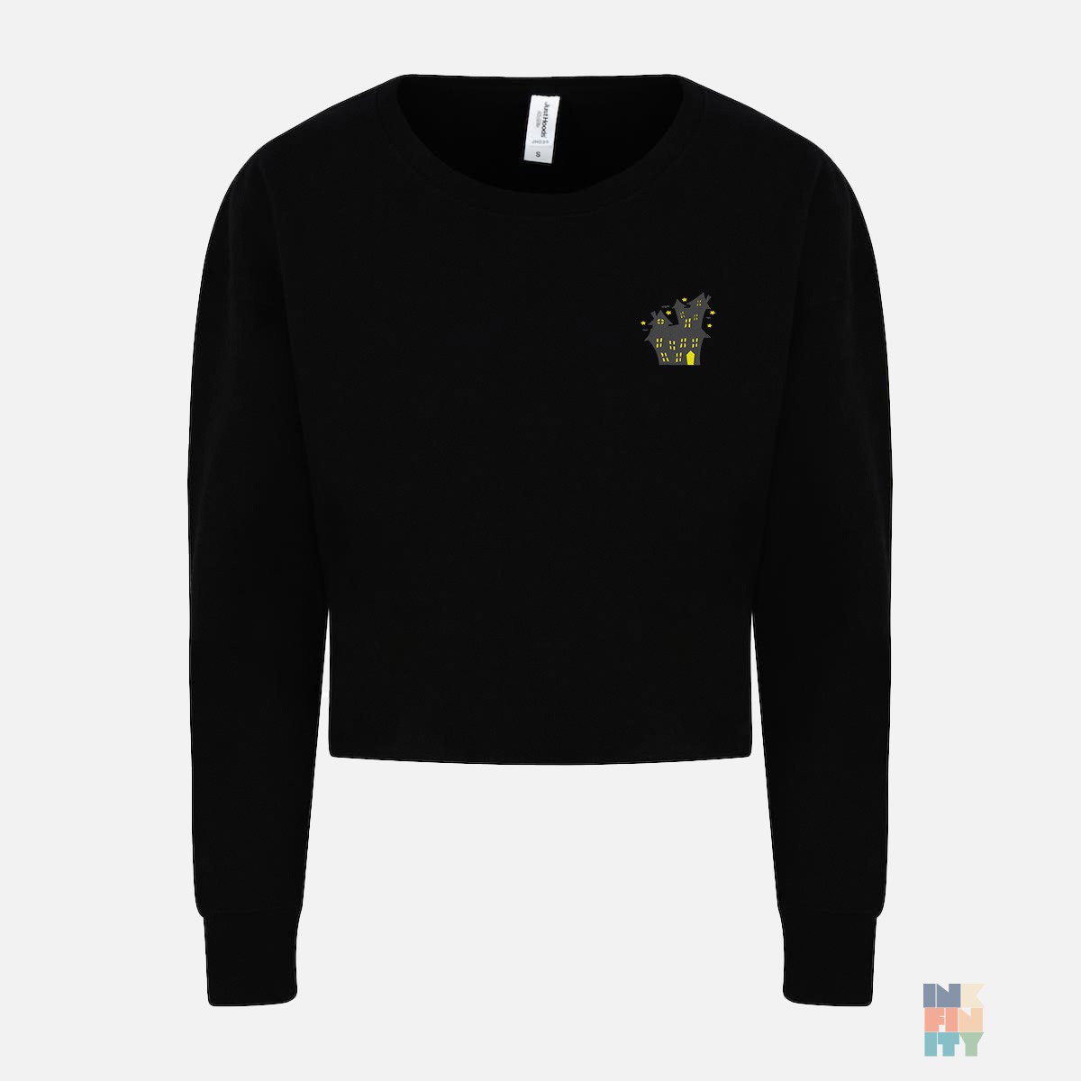 Pulover Cropped de Damă Scary Haloween Embroidery Just Hoods: Fabricat dintr-un amestec de 80% bumbac și 20% poliester, acest pulover are o grosime substanțială a materialului de 280 g/m2 pentru căldură și durabilitate. Interiorul pufos și periat adaugă o notă confortabilă, făcându-l o alegere perfectă pentru zilele mai răcoroase. Cu o croială feminină, umerii căzuți și o croială scurtă, acest pulover oferă o siluetă modernă. Decolteul rotund de la baza gâtului adaugă un detaliu subtil, în timp ce absența unei benzi elastice în talie oferă o senzație de relaxare. Eticheta detașabilă oferă o atingere personalizabilă. Importat și atent imprimat/brodat și prelucrat în România, acest pulover Cropped Lady-Fit este un plus la modă pentru garderoba ta casual.