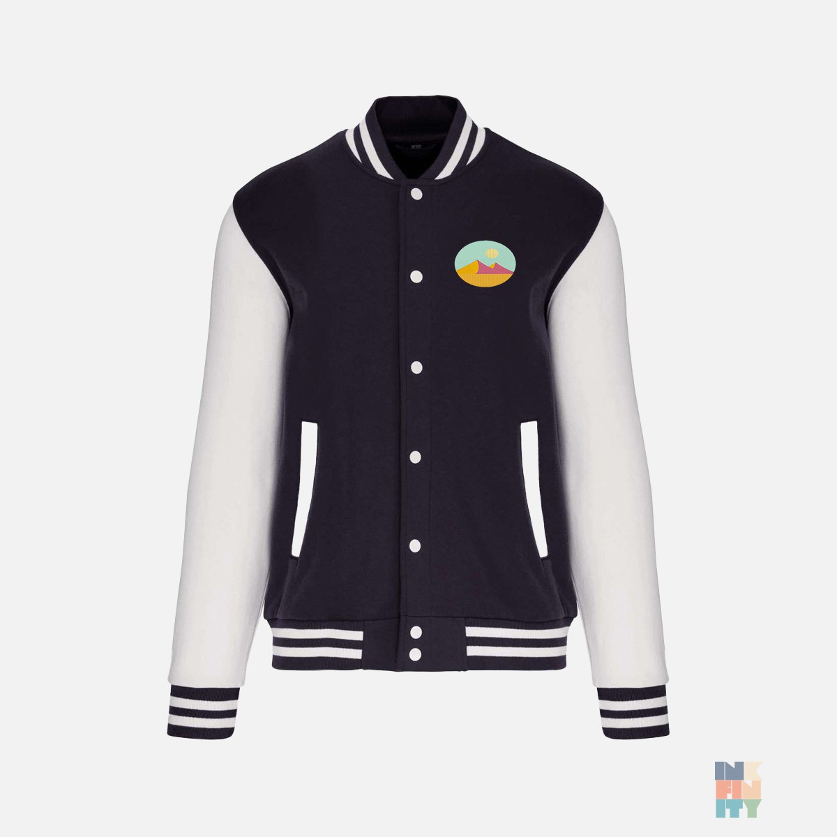 Jachetă Varsity de Copii Landscape Beautiful Nature Embroidery Kariban: Cu mâneci contrastante și două buzunare frontale, această jachetă combină moda și funcționalitatea. Cârligele din spatele gâtului adaugă o notă unică. Fabricat dintr-un amestec de 70% bum...