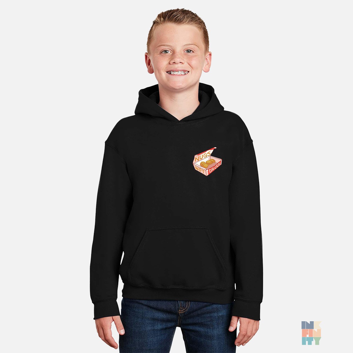 Pulover Heavyblend de Copii Nugs Not Drugs Gildan: Conceput pentru longevitate, cusăturile întărite în talie și manșete asigură durabilitate în timpul aventurilor de joacă. Materialul tubular, fără cusături laterale, sporește confortul, în timp ce materialul elastic cu adaos de lycra la manșete și talie asigură o potrivire sigură. Importat și meticulos imprimat/brodat și prelucrat în România, acest pulover Kids Heavy Blend reprezintă un amestec armonios de calitate internațională și măiestrie locală.